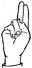 На ћирилици написано РАДНА КОВЛЕНИЋ састоји се из 13 слова [?]. Исписано ћириличном једноручном азбуком за глувонеме: